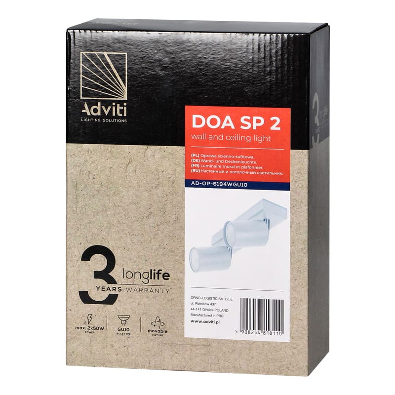 6194 Διπλο Σποτ Οροφης/Τοιχου Gu10 Στρογγυλο Φ54/75 Βαση 60×200 Λευκο Orno