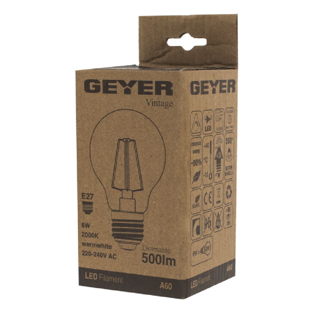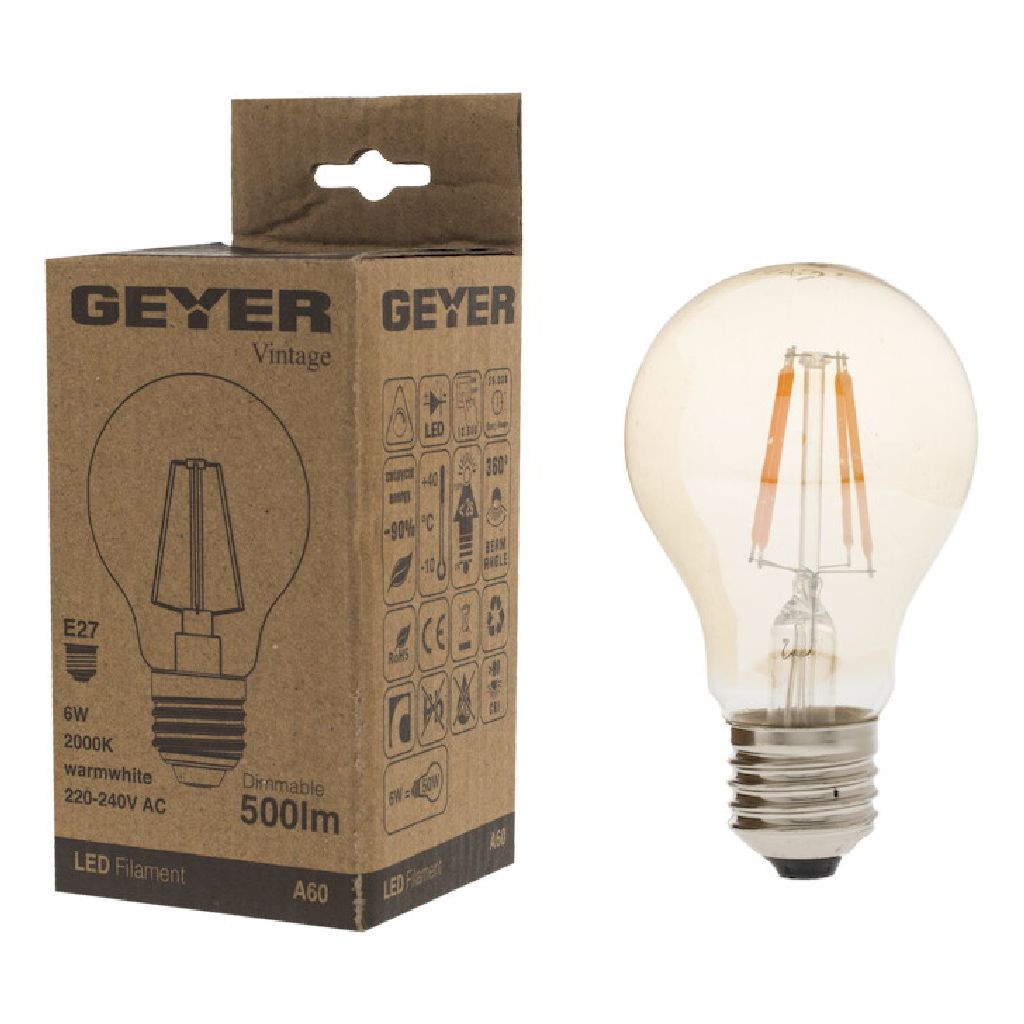 Vintage λάμπα LED A60 6W, E27, 2000K, 500Lm, dim για ρύθμιση έντασης ζεστού φωτισμού.