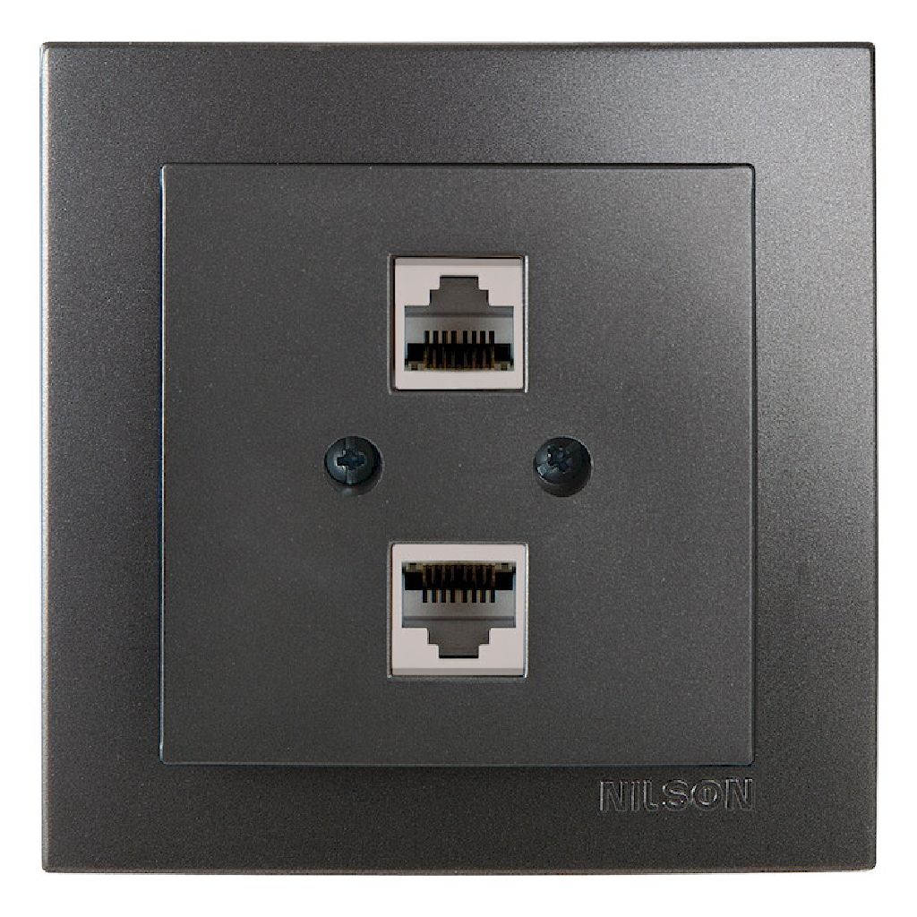 Ανθρακί Πρίζα Δικτύου Cat5 Διπλή