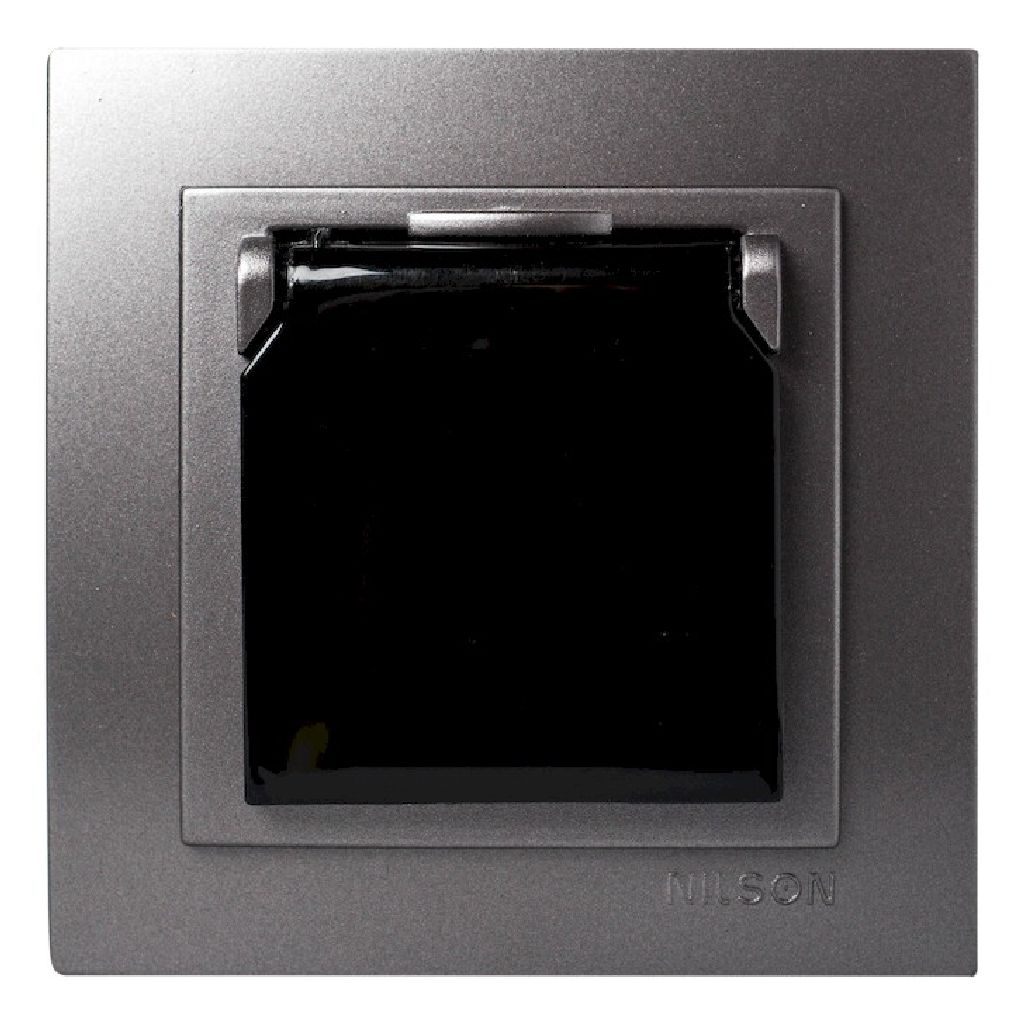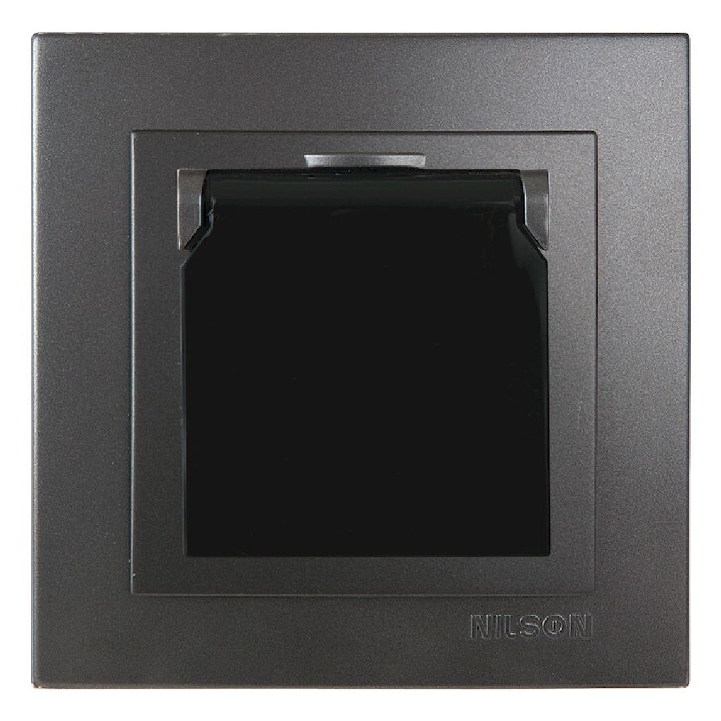 Ανθρακί Πρίζα Σούκο Με Προστασία Και Καπάκι