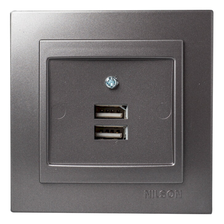 Ανθρακί Πρίζα Usb Διπλή