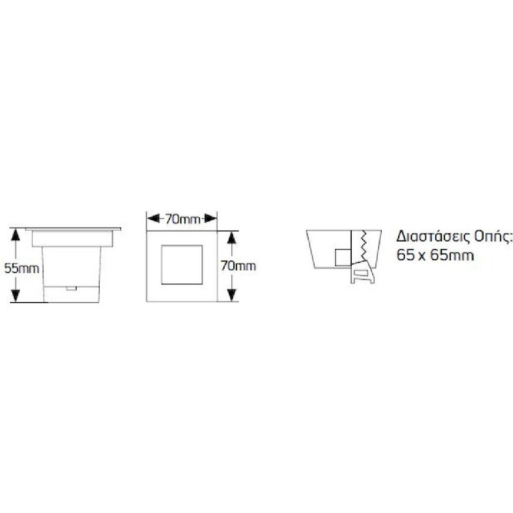 Απλίκα LED 1W, 3000K, 60Lm, 65x65mm, IP65 (επαναλαμβανόμενη μονάδα).
