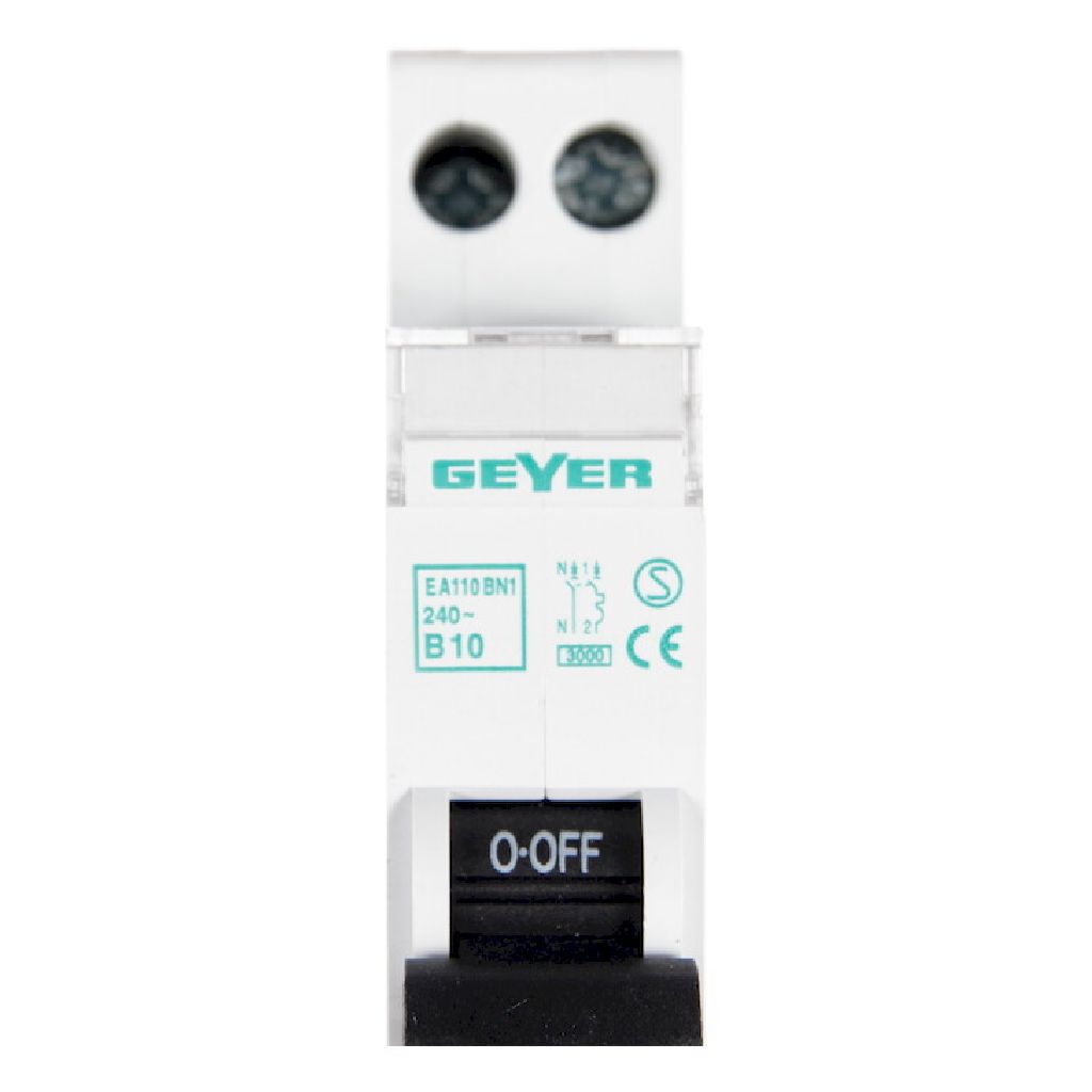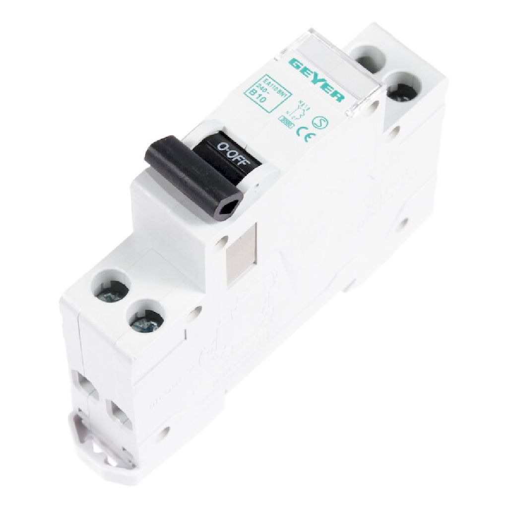 Ασφάλεια 1P+N 1Θ 10A τύπου B, για βασική μονοφασική προστασία με ουδέτερο.