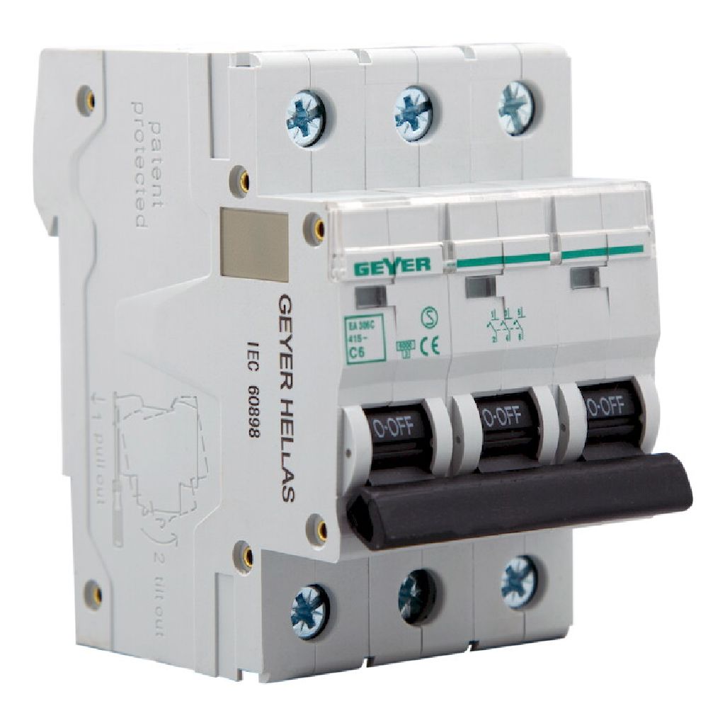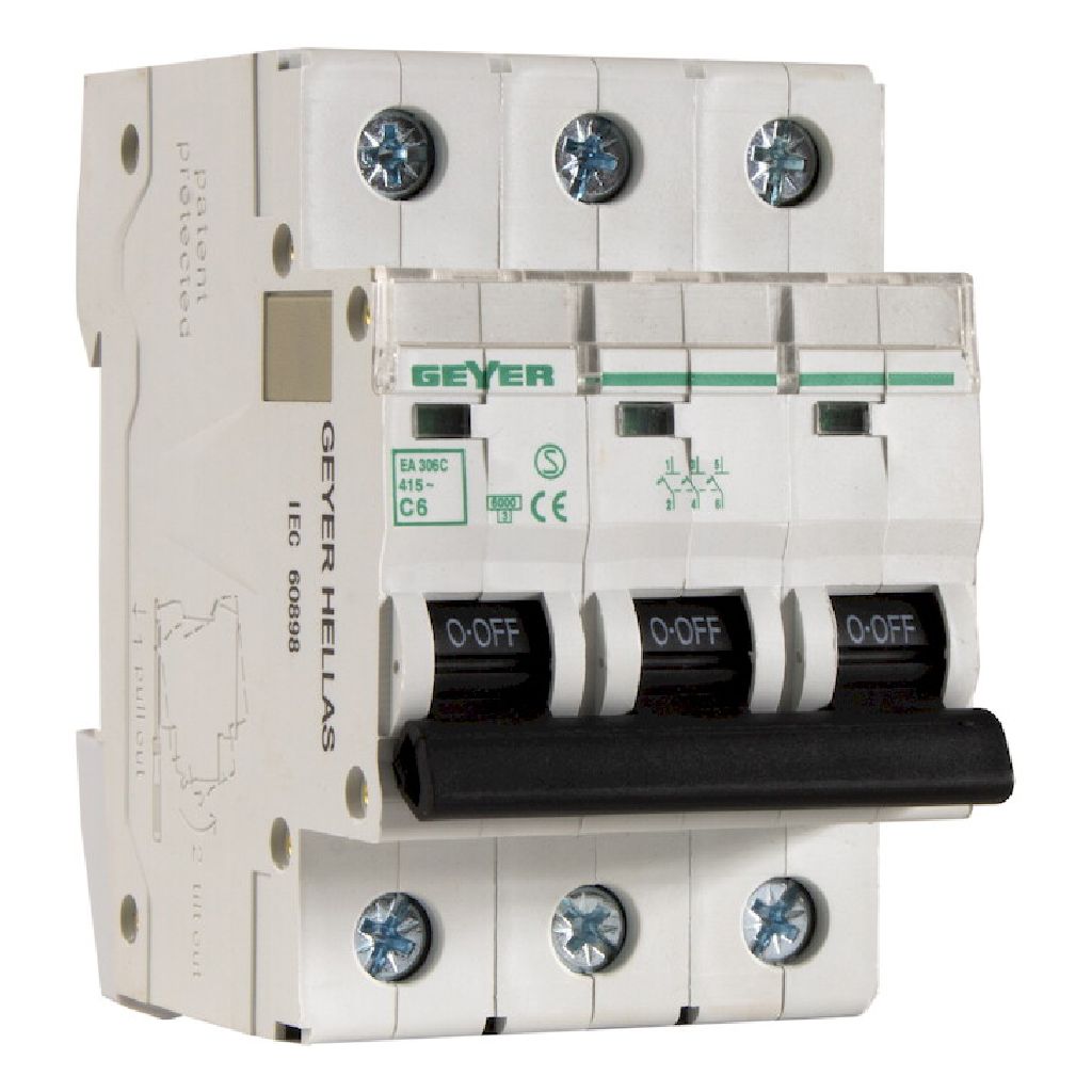 Ασφάλεια 3P 6A τύπου C, για τριφασικά κυκλώματα χαμηλής ισχύος.