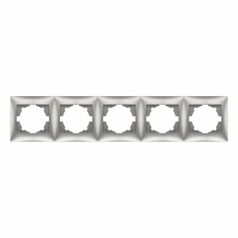 Ασημί πλαίσιο πενταπλό οριζόντιο Domus για πέντε διακόπτες οριζόντια.