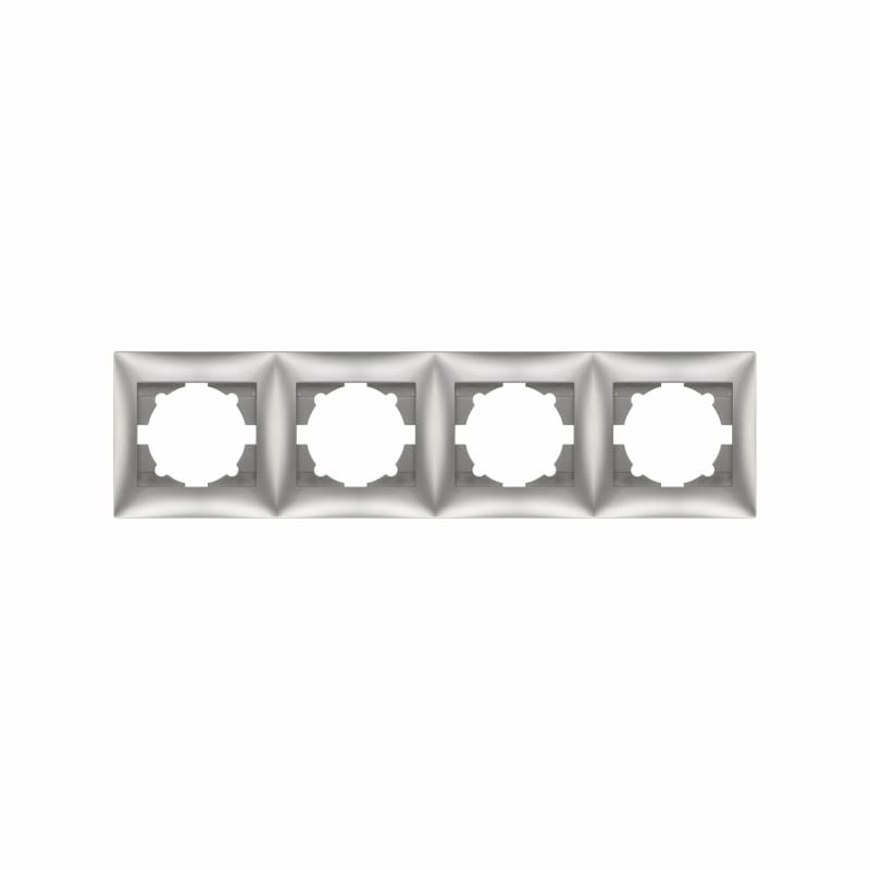 Ασημί πλαίσιο τετραπλό οριζόντιο Domus για τέσσερις διακόπτες οριζόντια.