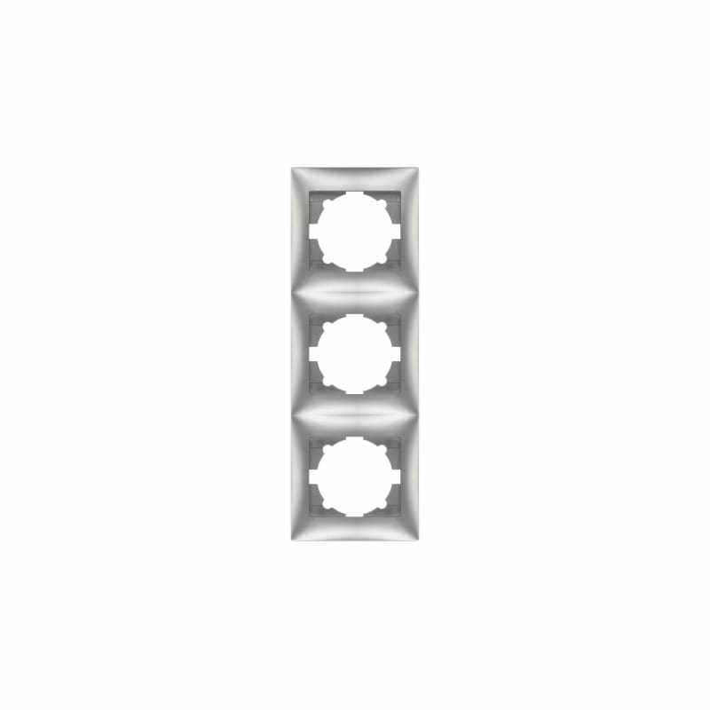 Ασημί πλαίσιο τριπλό κάθετο Domus για τρεις διακόπτες κάθετα.