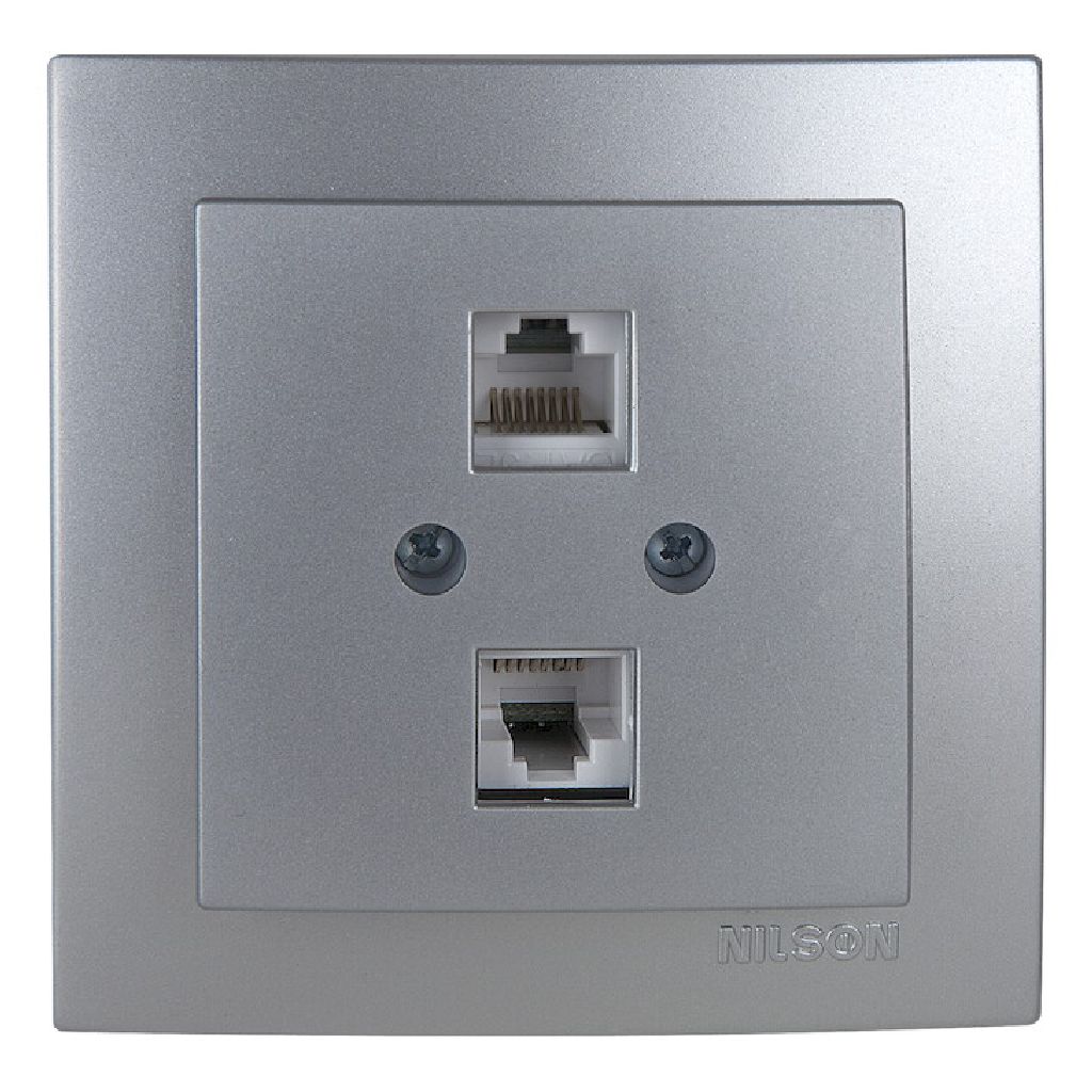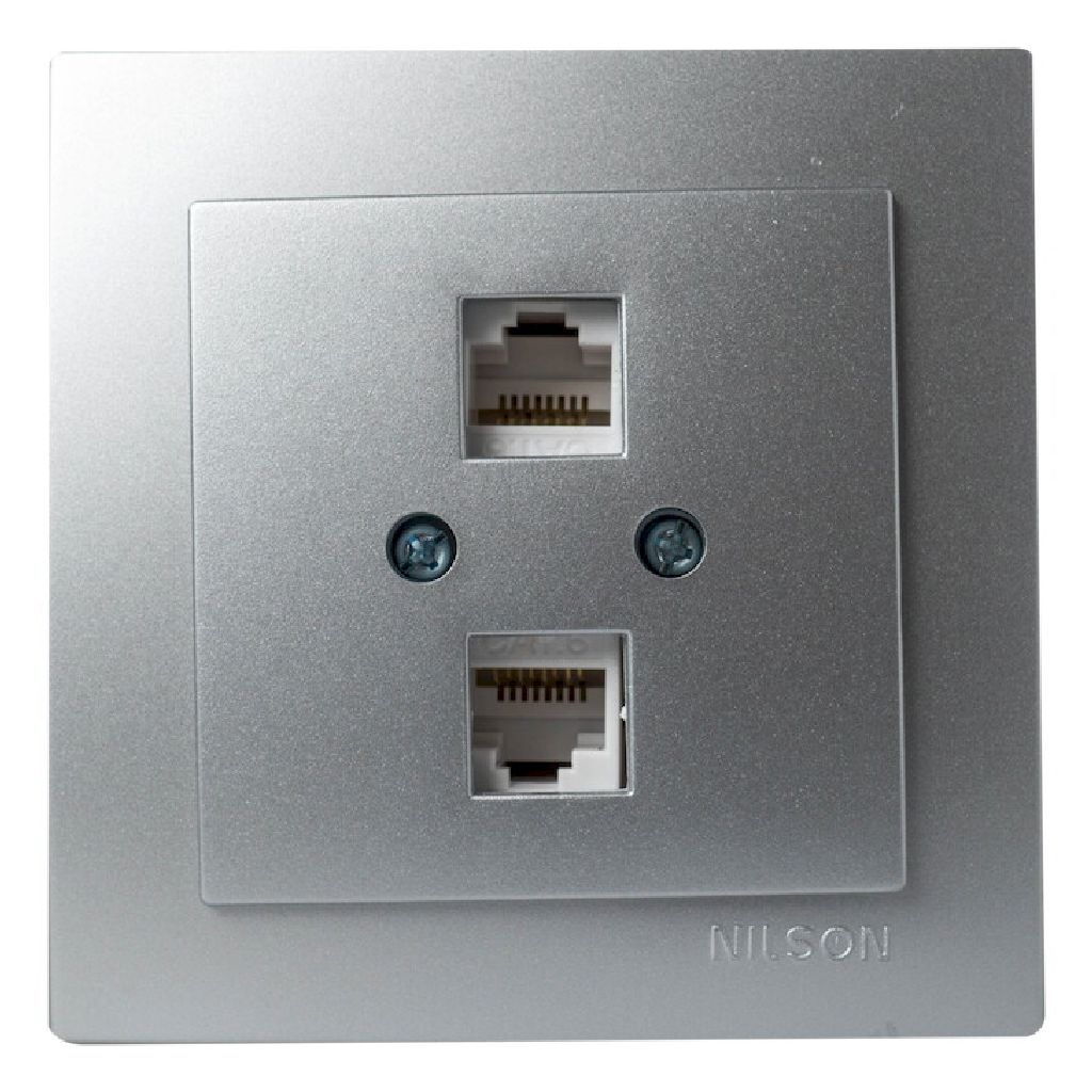Ασημί Πρίζα Δικτύου Cat6 Διπλή