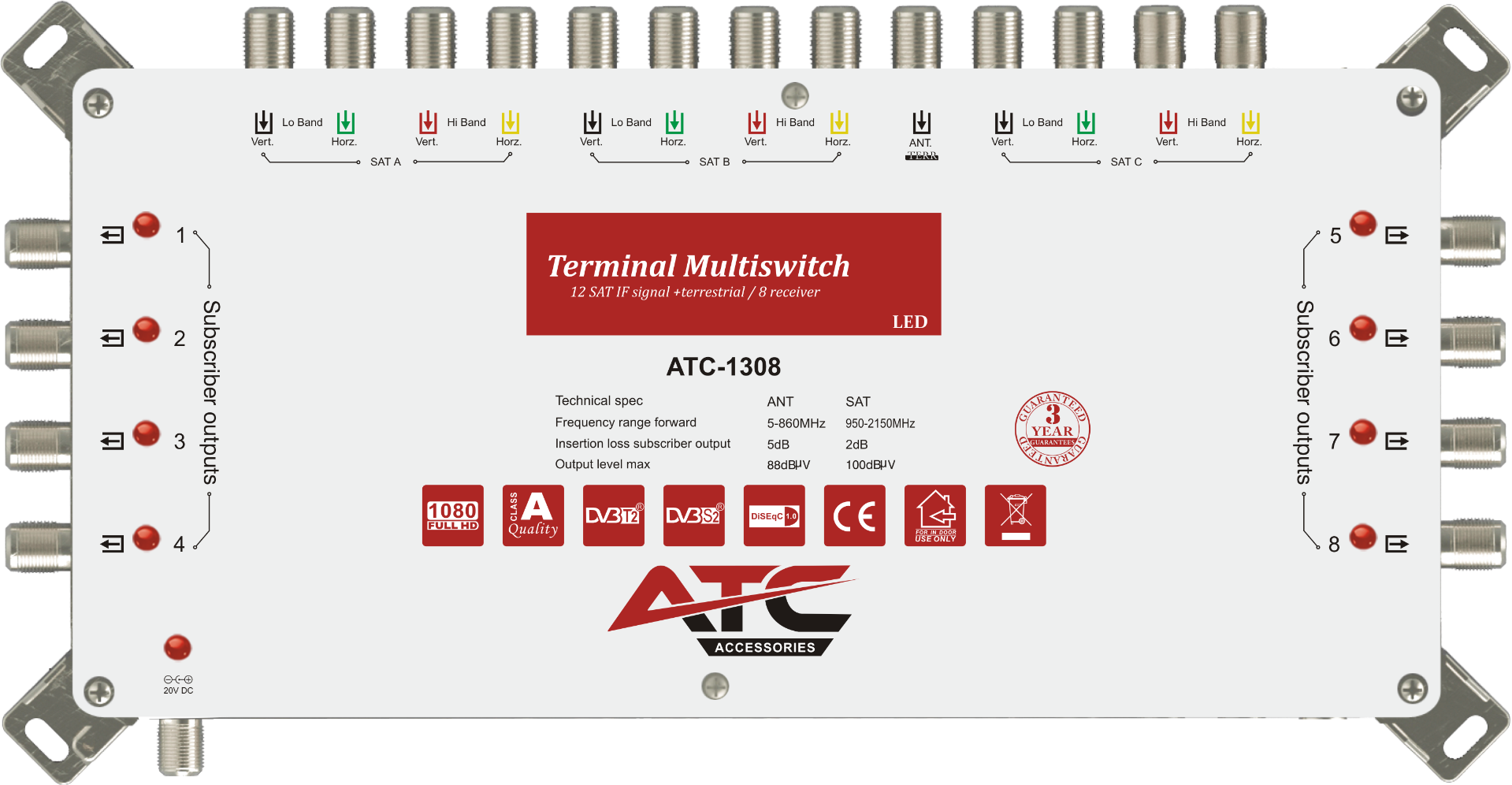Atc Πολυδιακοπτης Atc-1308 (3 Sat + 1 Ter / 8 Εξόδοι)