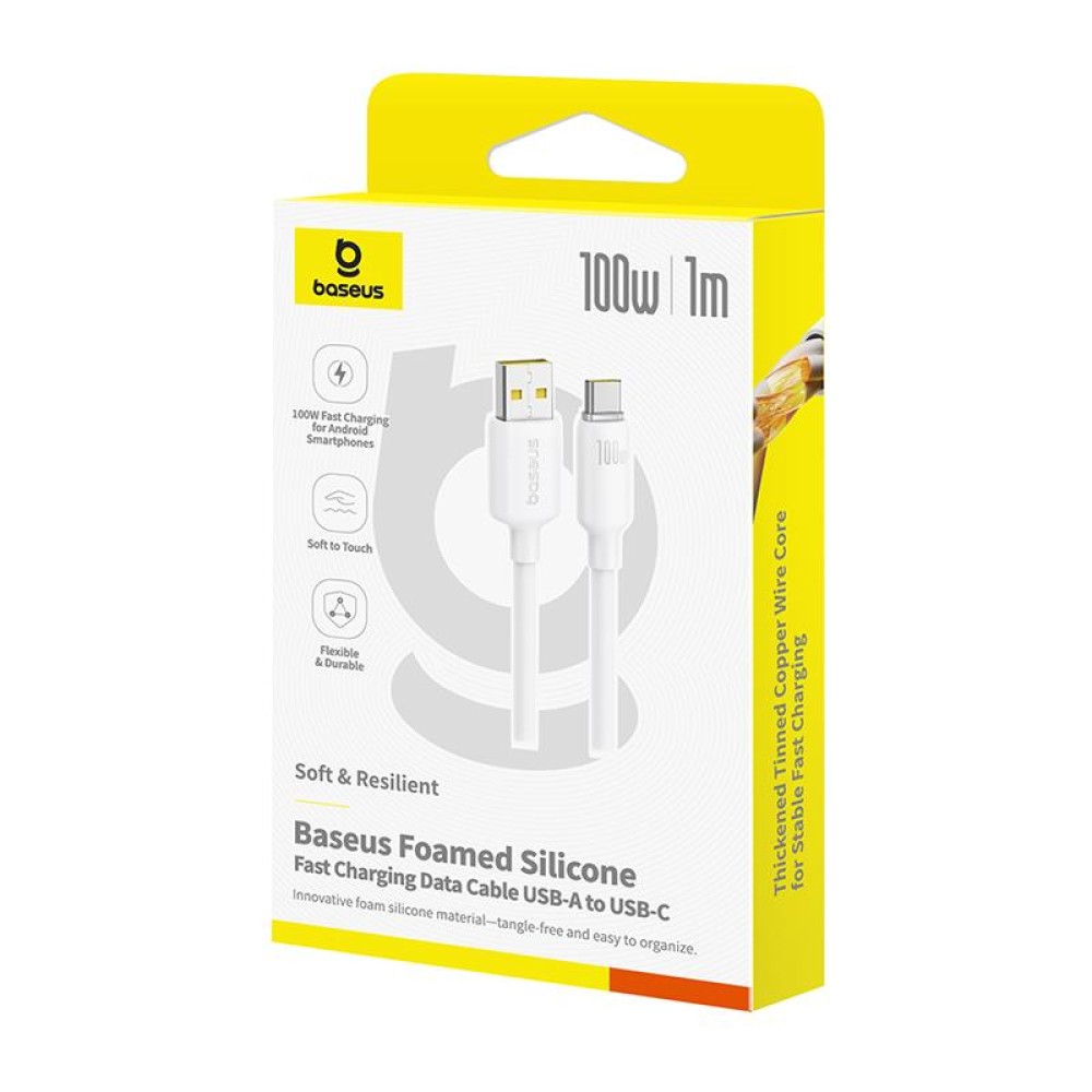 Baseus foamed silicone, καλώδιο γρήγορης φόρτισης, type -c, 100w, 1m, λευκό