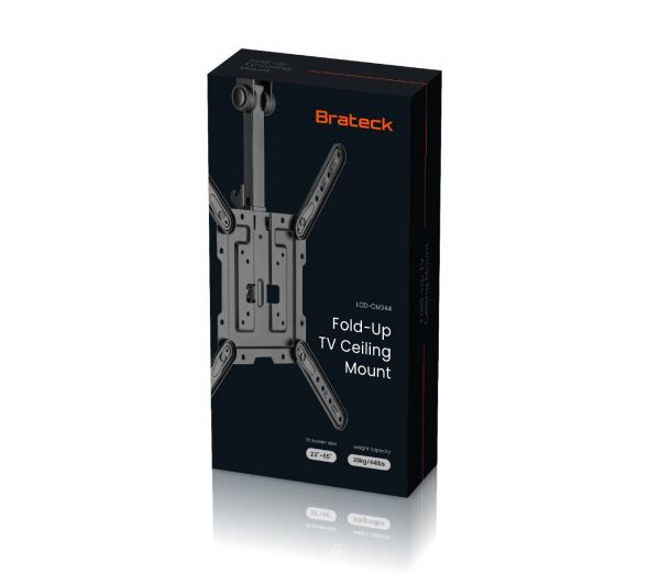 Με αναδιπλούμενο σχεδιασμό κλειδώματος, η Οικονομική αναδιπλούμενη βάση οροφής LCD-CM344 προσφέρει την τέλεια λύση για την τοποθέτηση τηλεοράσεων κάτω από ντουλάπια, σε χώρους εργασίας, σε κεκλιμένες οροφές και μια εξαιρετική λύση για οικιακές εγκαταστάσεις. Η ελαφριά κατασκευή από αλουμίνιο και χάλυβας με άφθονη δυνατότητα προσαρμογής που περιλαμβάνει περιστρεφόμενη βάση οροφής 360° μπορεί να τοποθετήσει τέλεια τηλεοράσεις 23″ έως 55″ με μέγιστη χωρητικότητα φορτίου 20kg/44lbs. Η ρυθμιζόμενη κάθετη ράγα διευκολύνει τη ρύθμιση της τηλεόρασης στο προτιμώμενο ύψος.