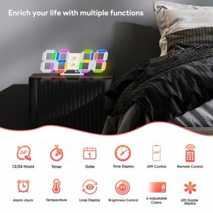 3. Με τρισδιάστατο σχέδιο, αυτό το ρολόι όχι μόνο εμφανίζει με ακρίβεια την ώρα και την ημερομηνία, αλλά διαθέτει επίσης μοναδικές διακοσμήσεις με φως LED, προσθέτοντας μια νότα στυλ και μοντέρνα στο χώρο σας.