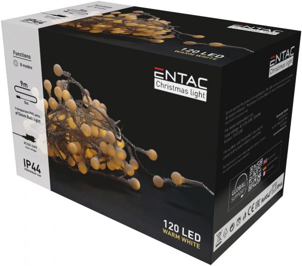 Entac Χριστουγεννιάτικα Λαμπάκια Ip44 15Mm Μπάλες 120Led 9M Θερμό