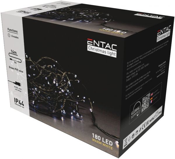 Entac Χριστουγεννιάτικα Λαμπάκια Ip44 180 Led Θερμό 14M