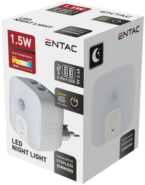 Entac Φωτάκι Νυκτός 3000K Με 2 Usb Θύρες Και Φωτοκύτταρο