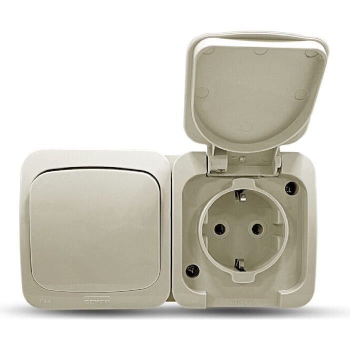 Επίτοιχος Διακόπτης Α/Ρ & Πρίζα Σούκο Ip44 Γκρι