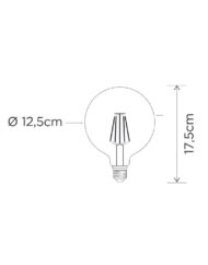 Λαμπτήρας LED Filament (με ρυθμιζόμενη ένταση λευκού φωτός) G125 7,2W με ντουι E27, φωτεινότητα 806lm και θερμοκρασία χρώματος 2200/2700/4000/5500Κ. Η τάση λειτουργίας της λάμπας είναι στα 220-240V & συχνότητα 50/60Hz.Η γωνία δέσμης φωτός είναι 360 μοίρες και στεγανοποίση IP20. Eγγύηση 2 έτη από την LUTEQ. Η ρύθμιση του λαμπτήρα γίνεται με χειριστήριο (δεν περιλαμβάνεται στην συσκευασία) ή μέσω application (luteq connect) το οποίο εναι συμβατό με voice control Hey google & alexa.