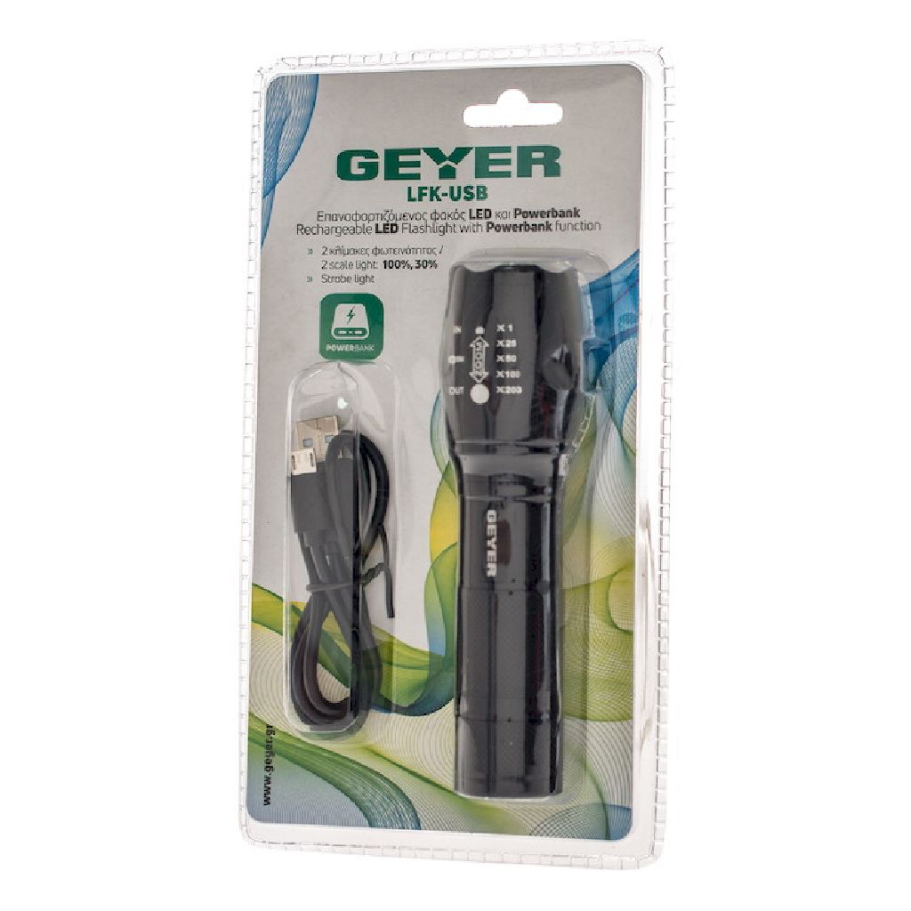 Χαρακτηριστικά Φακός LED από αλουμίνιο με zoom, strobe light, SOS και power Bank