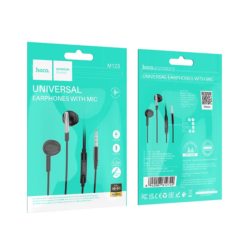 HOCO M123 ΑΚΟΥΣΤΙΚΑ 3.5MM JACK GLORY UNIVERSAL ΜΕ ΜΙΚΡΟΦΩΝΟ , ΜΑΥΡΑ
