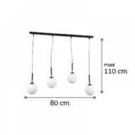 Κρεμαστό Φωτιστικό Από Μαύρο Μέταλλο Και Λευκή Οπαλίνα 4Xg9 D:80Cm
