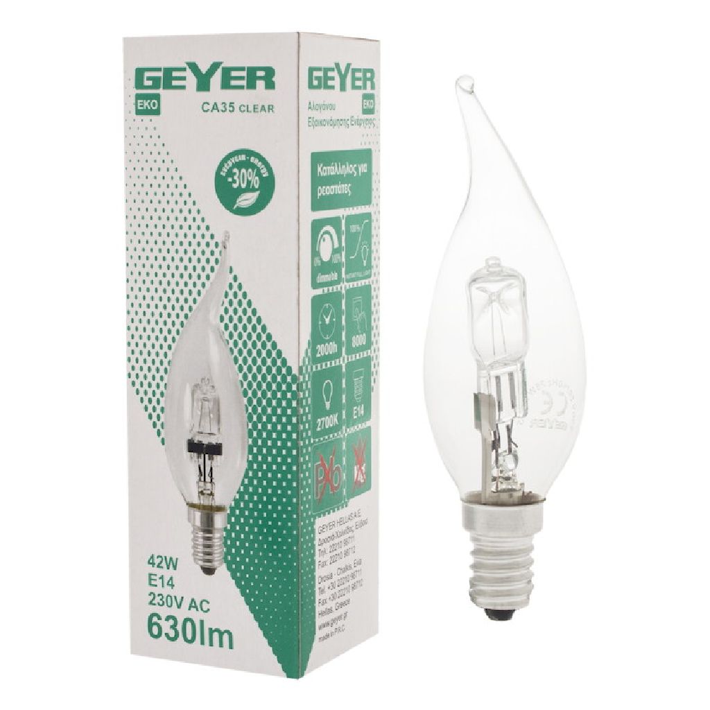 Λάμπα Αλογόνου Κερί Ca37 42W E14 2700Κ 630Lm