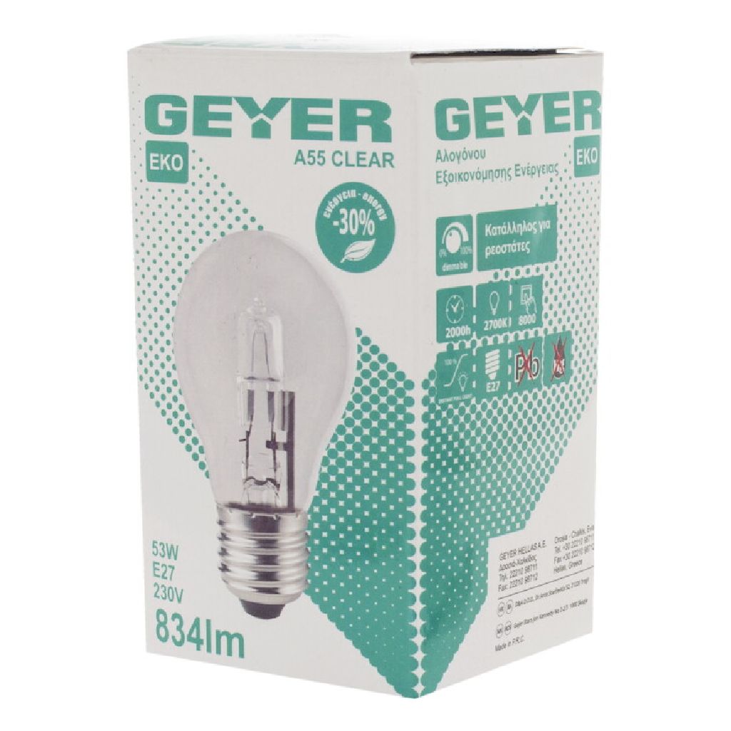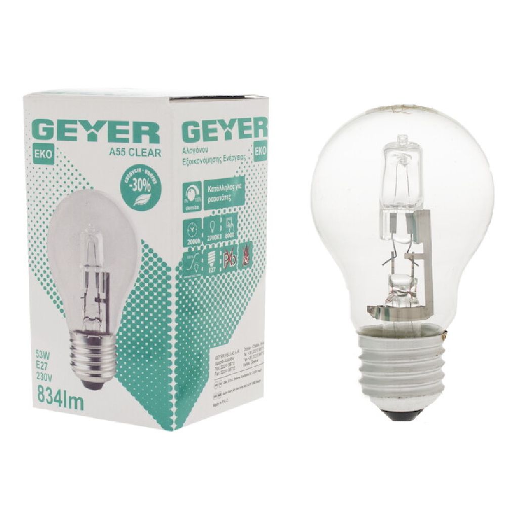 Λάμπα Αλογόνου Κλασσική Α55 53W E27 2700Κ 834Lm