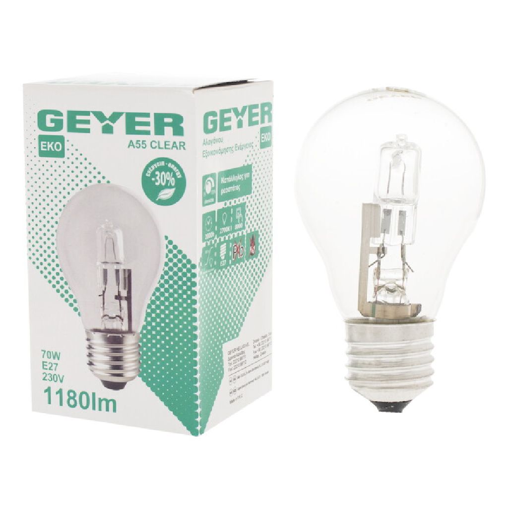Λάμπα Αλογόνου Κλασσική Α55 70W E27 2700Κ 1180Lm