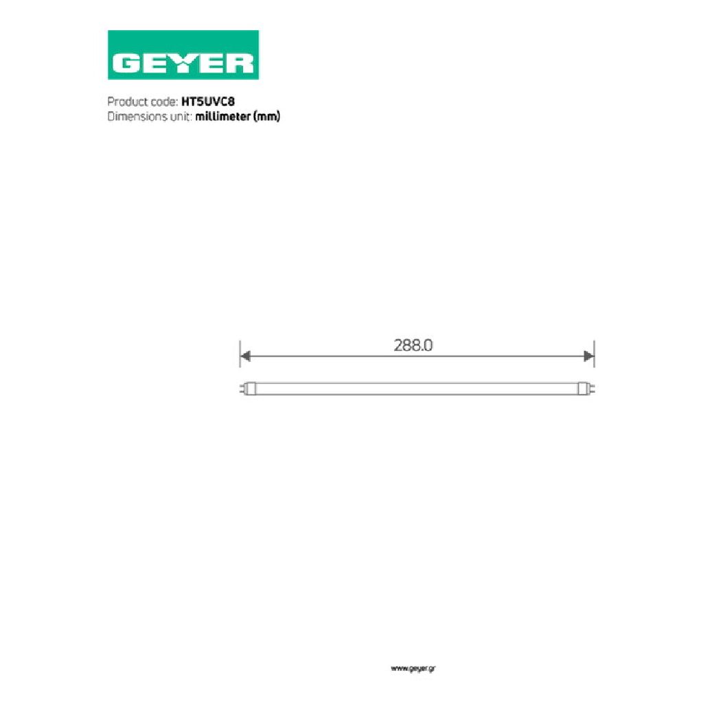 LED Αποστείρωσης T5 UV-C 8W για μέσης έντασης αποστείρωση.