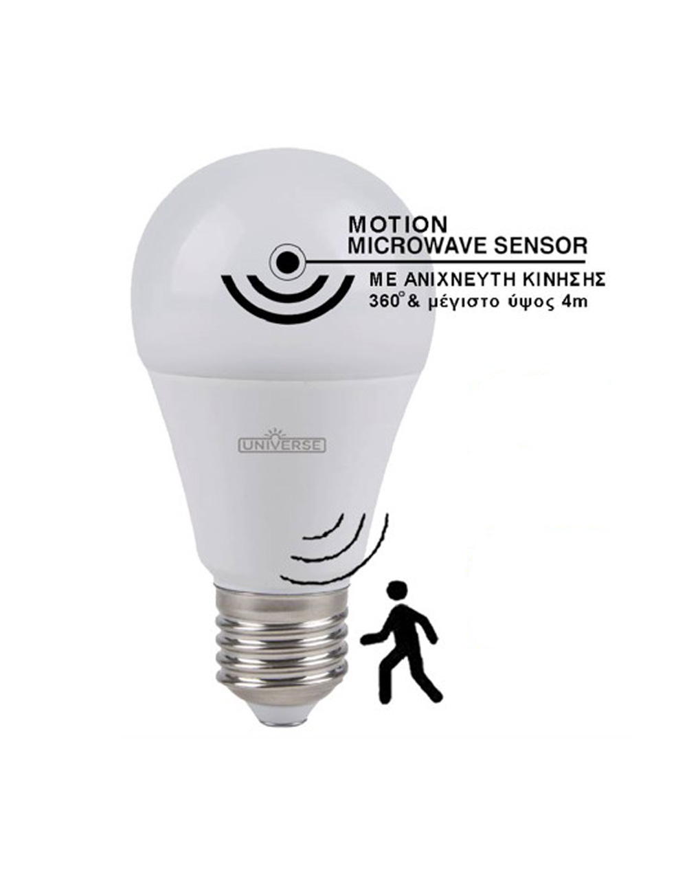 Λαμπα Led E27 Smd A60 Με Ανιχνευτη Κινησης 7W 4000Κ 220-240V 680Lm Universe