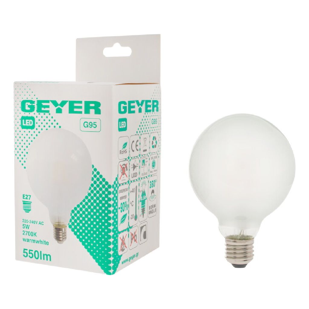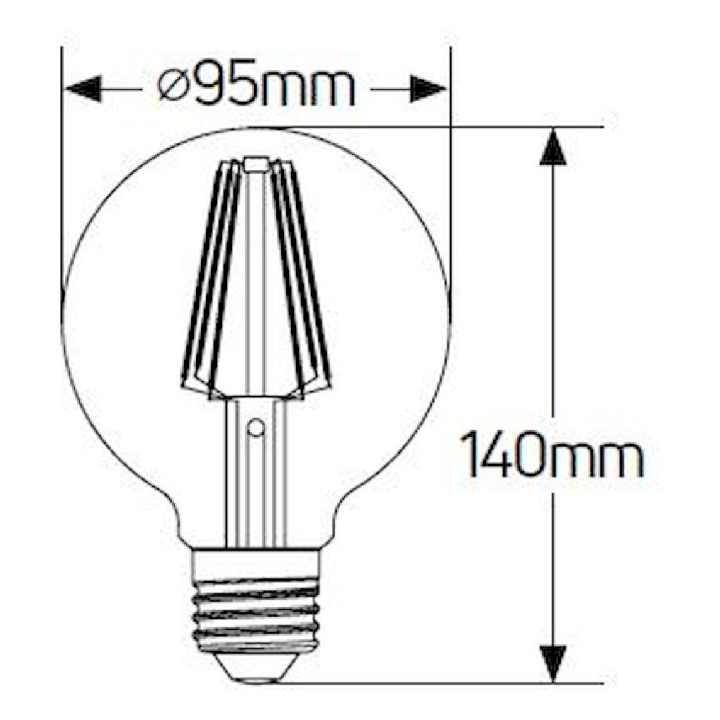 Γλόμπος LED filament Matt G95 5W, E27, 2700K, 550Lm για θερμό φωτισμό με ρυθμιζόμενη ένταση.