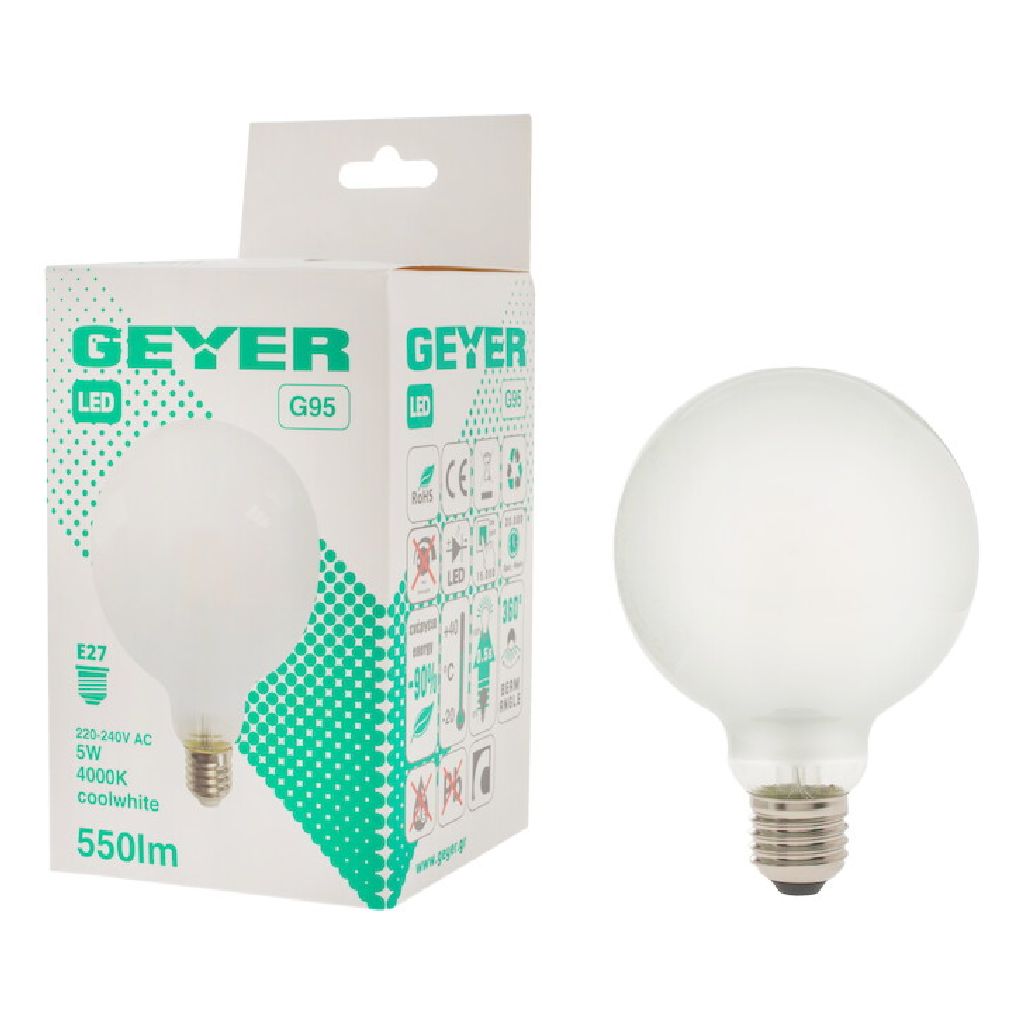 Γλόμπος LED filament Matt G95 5W, E27, 4000K, 550Lm για ψυχρό φωτισμό με ρυθμιζόμενη ένταση.