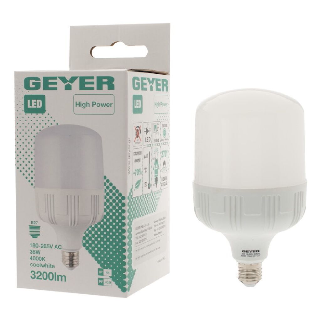 High Power Premium LED 36W, E27, 4000K, 3850Lm, PF>0.9, IP44 για ισχυρό ψυχρό φωτισμό υψηλής απόδοσης.