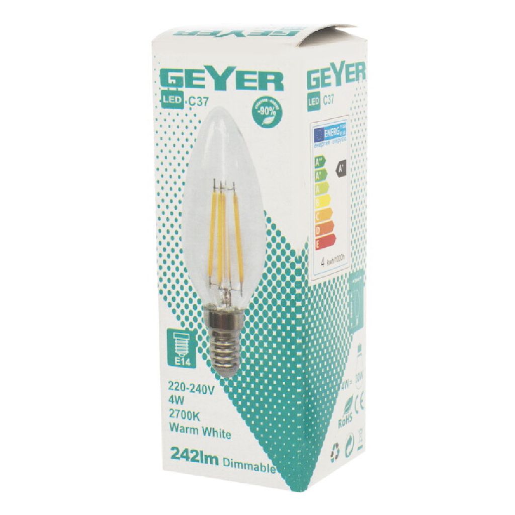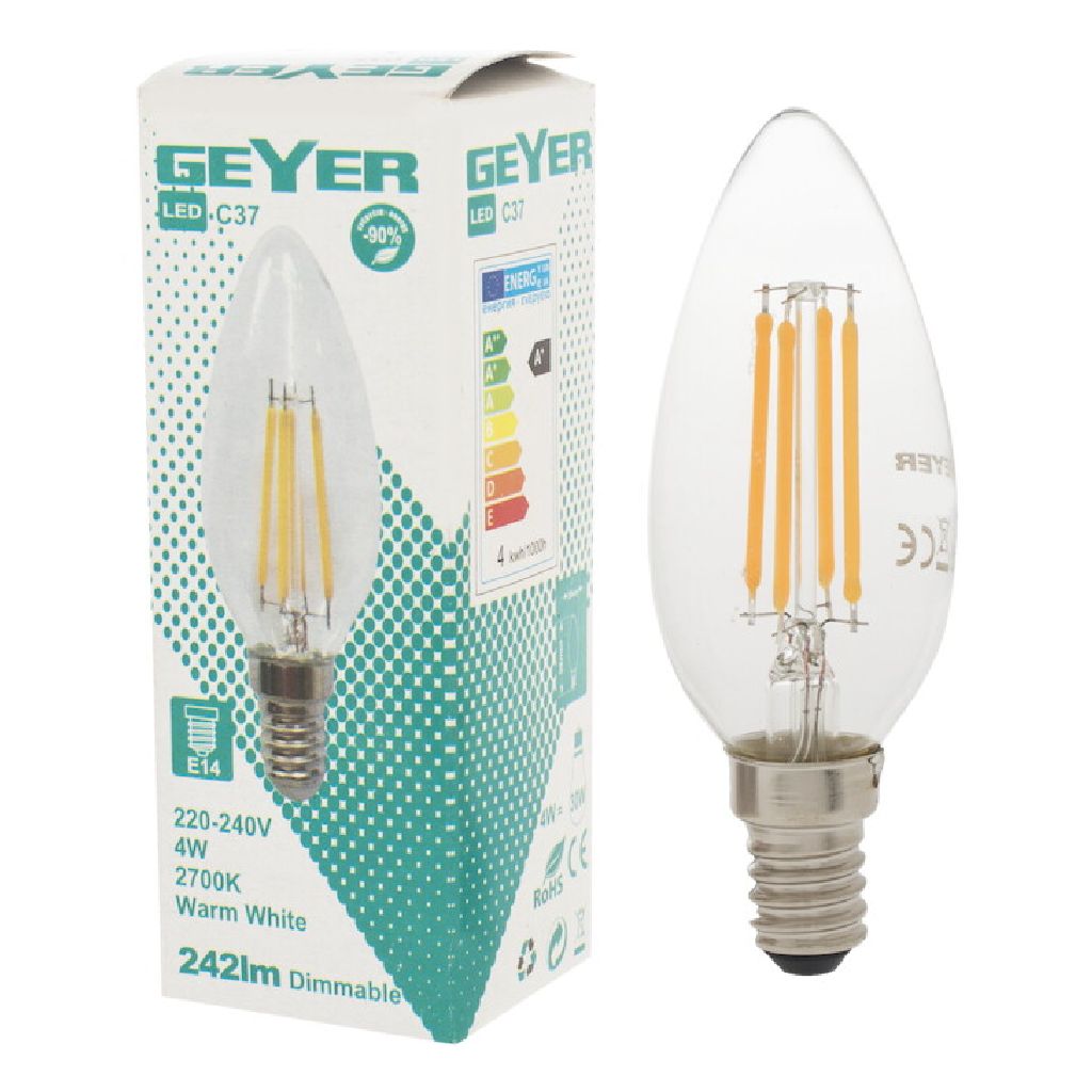 Κερί LED filament C35 4W, E14, 2700K, 470Lm για ζεστό διακοσμητικό φωτισμό.