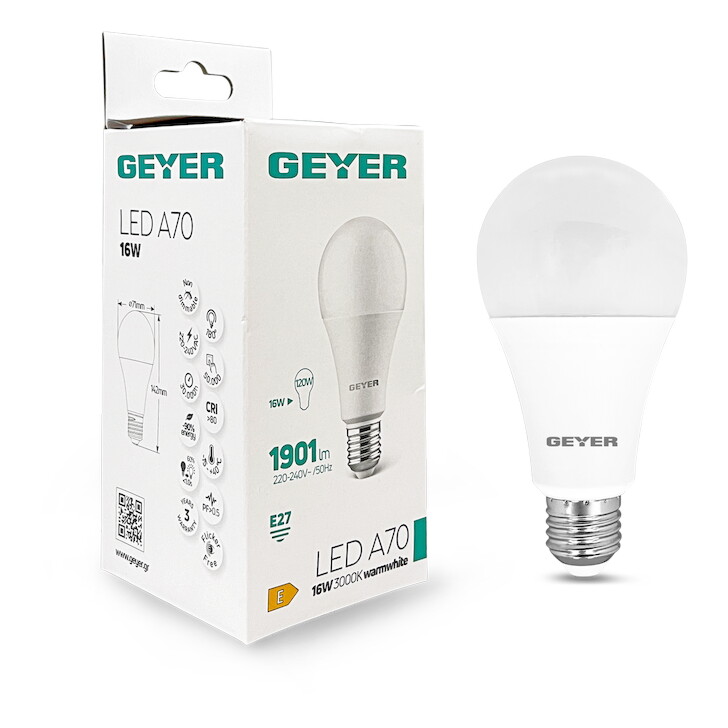 Λαμπα Led Κλασικη A70 16W E27 3000K 1901Lm Ip40