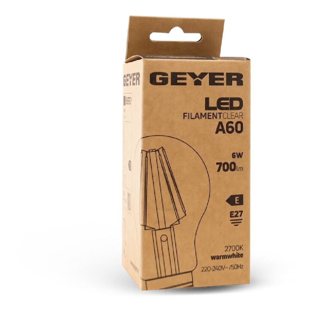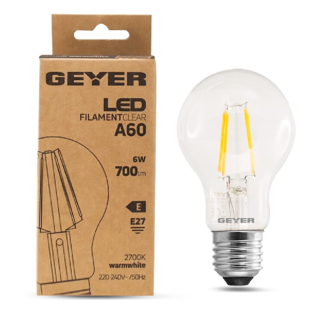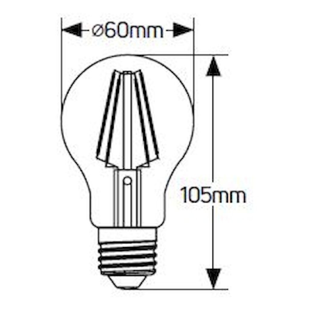 Κλασική λάμπα LED filament A60 6W, E27, 2700K, 700Lm για φωτεινό ζεστό φωτισμό.