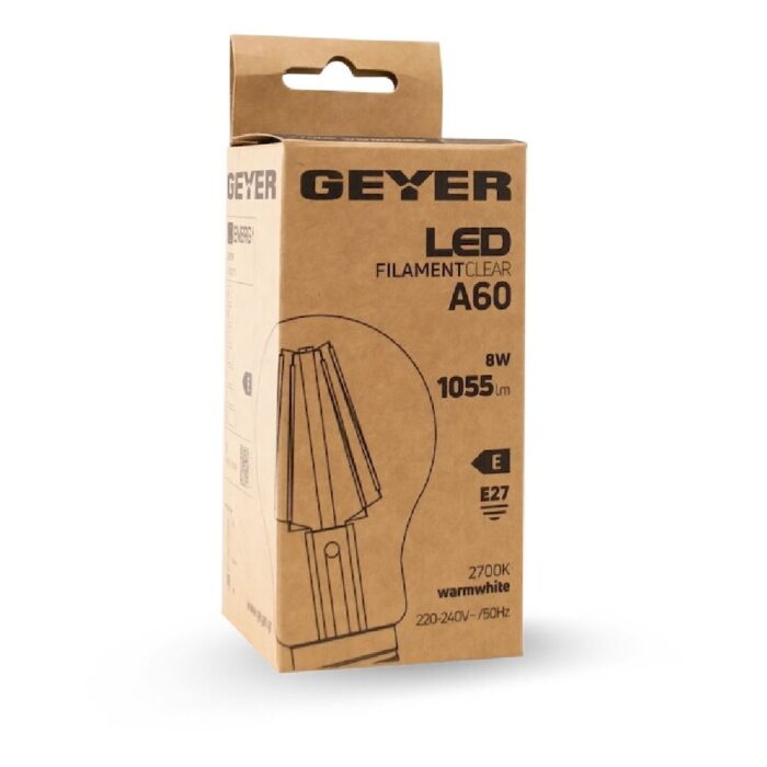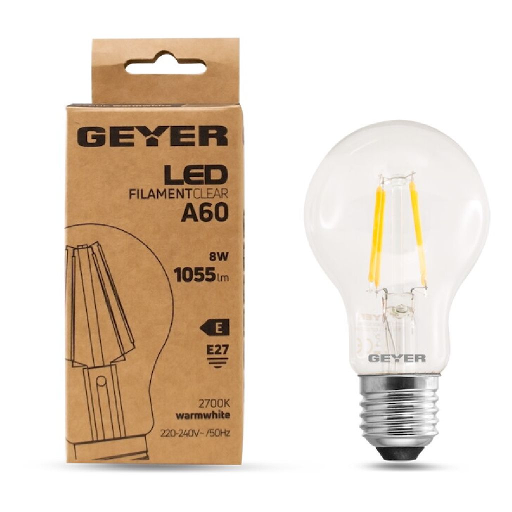 Κλασική λάμπα LED filament A60 8W, E27, 2700K, 1055Lm για έντονο θερμό φωτισμό.