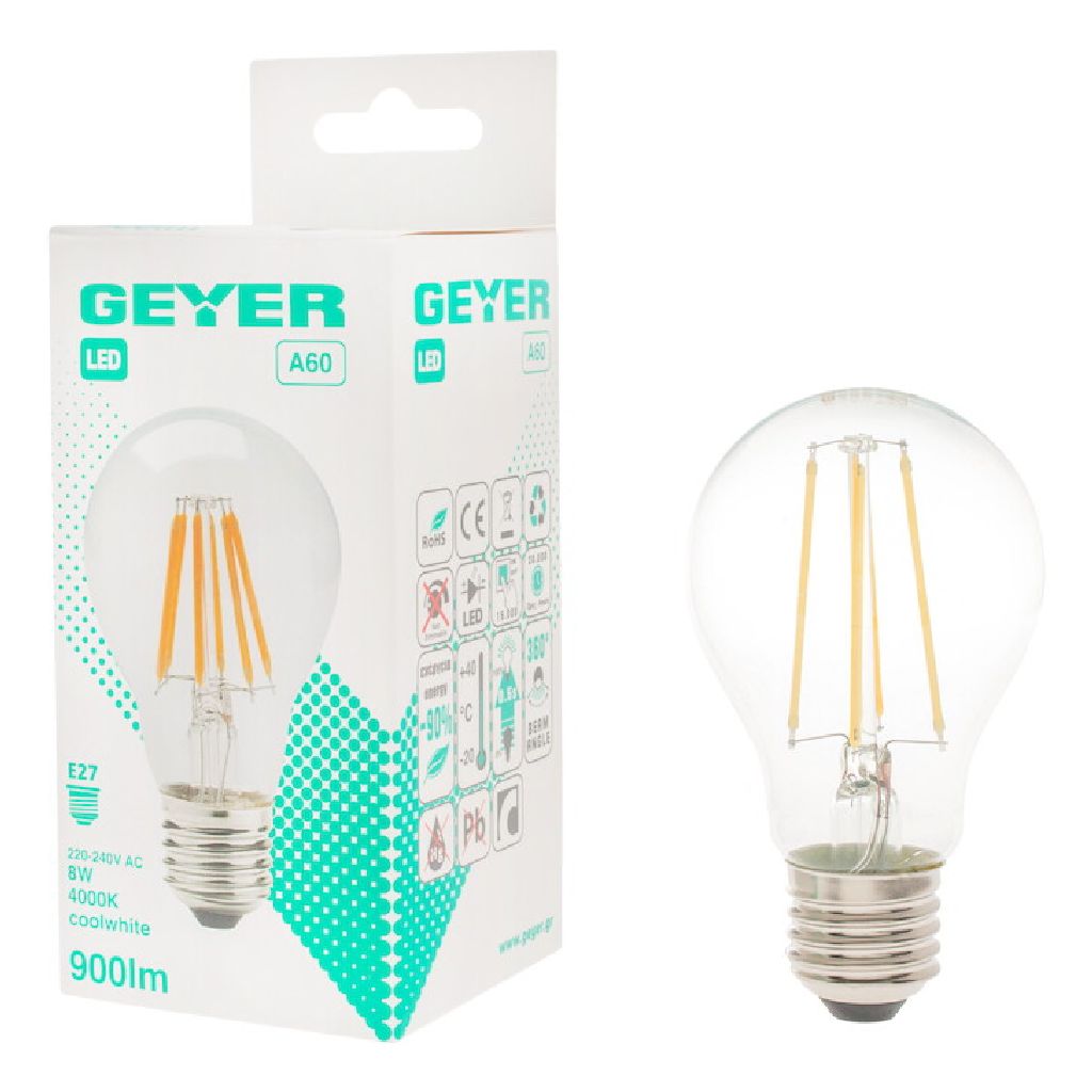 Κλασική λάμπα LED filament A60 8W, E27, 4000K, 1055Lm για έντονο ψυχρό φωτισμό.