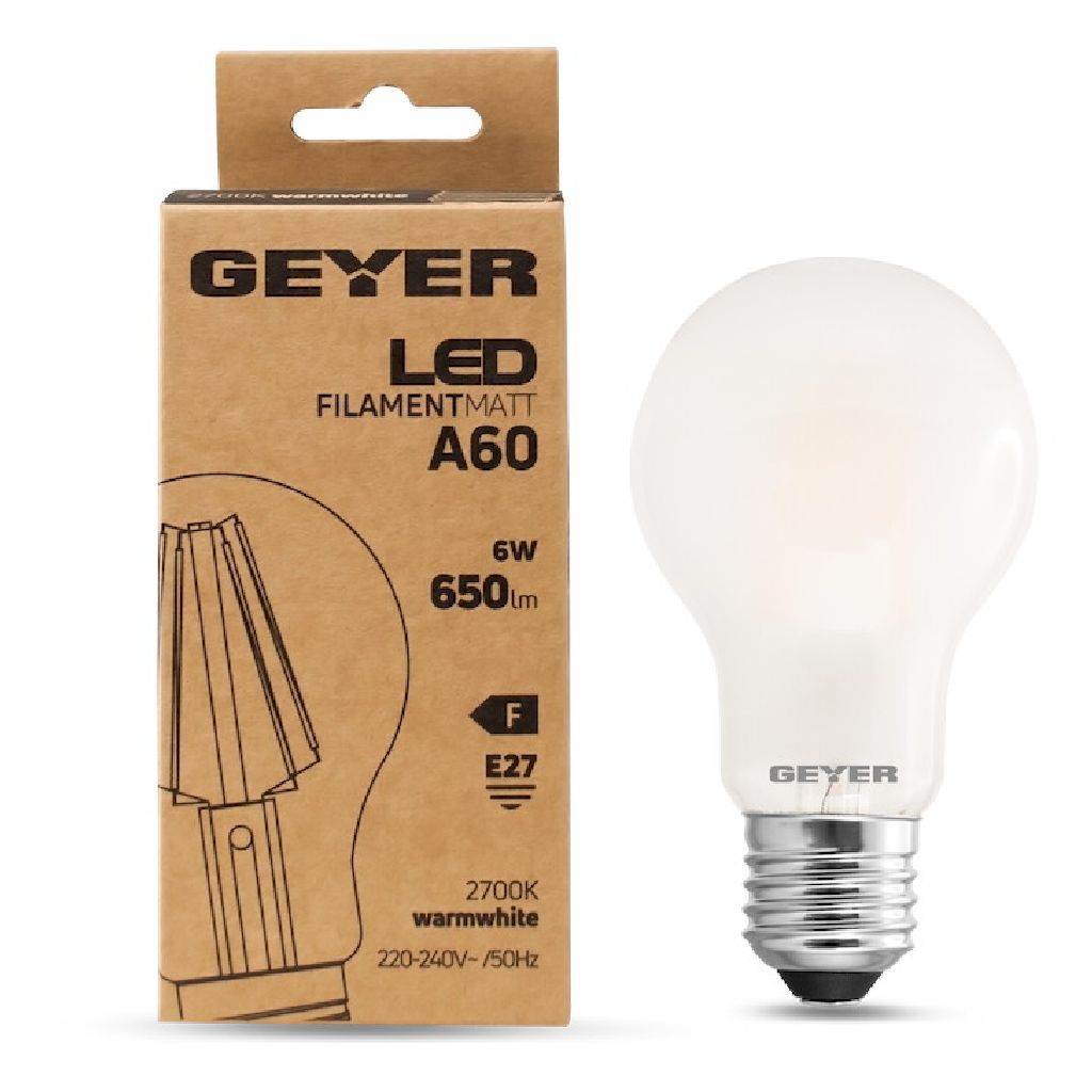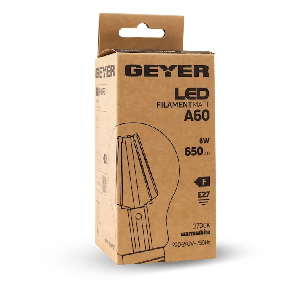 Κλασική λάμπα LED filament Matt A60 6W, E27, 2700K, 650Lm για φωτισμό με ζεστό τόνο.