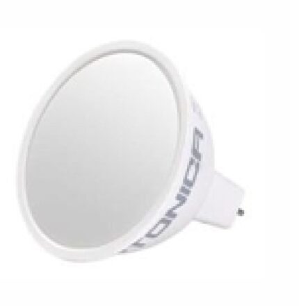 Λάμπα LED MR16 12V DC GU5.3 5W 2700K 400Lm με γωνία 110°, κατάλληλη για γενικό φωτισμό.
