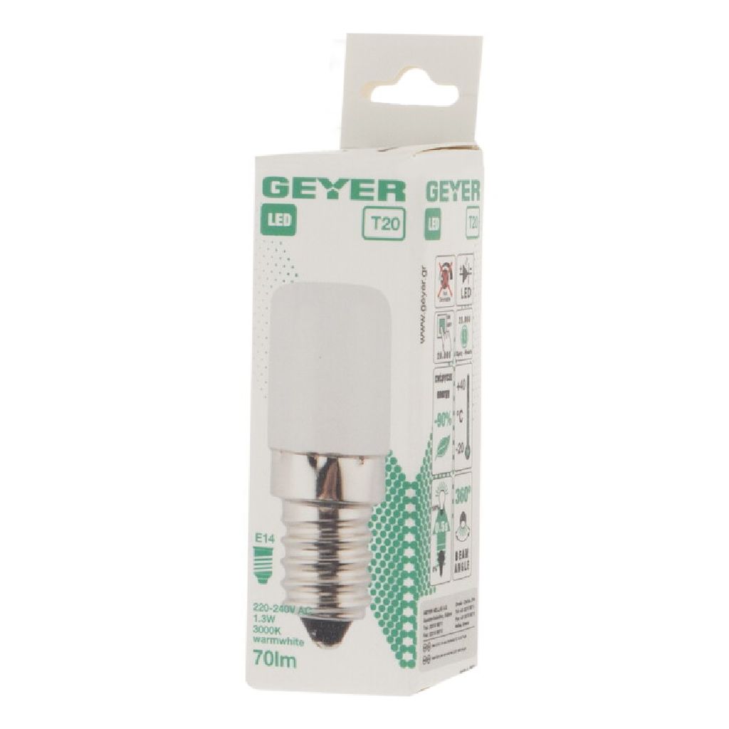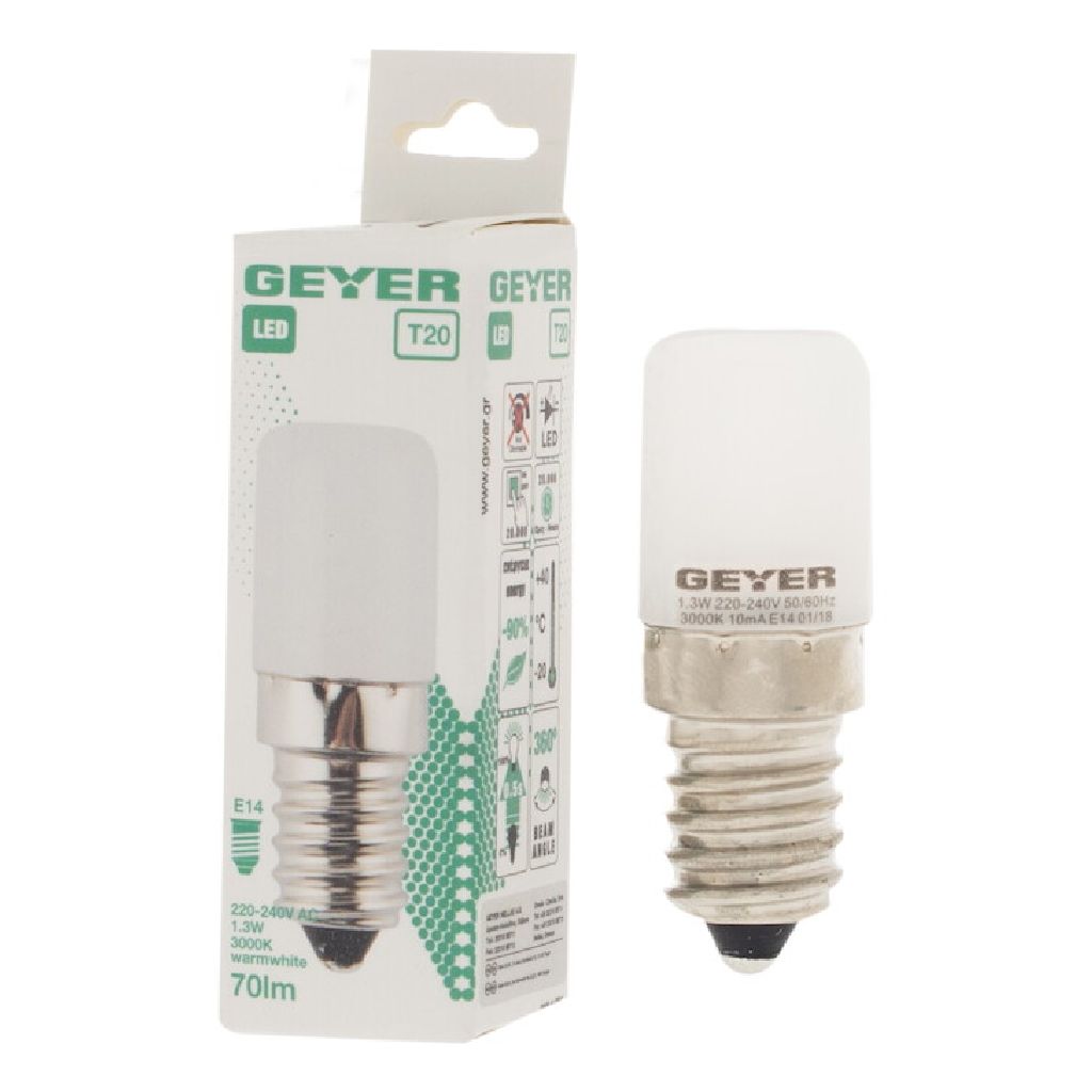 Νυχτός LED T20 1.3W, E14, 3000K, 70Lm για θερμό νυχτερινό φωτισμό.