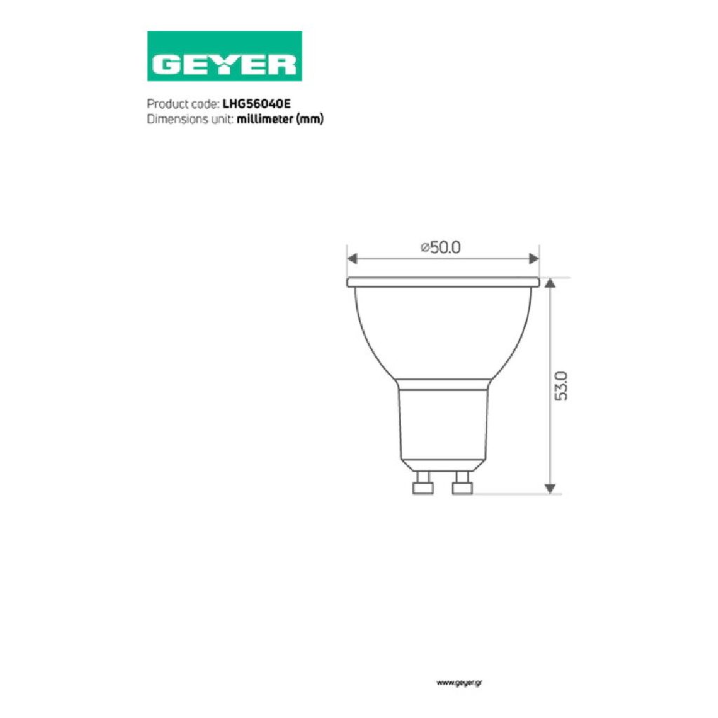 LED Par16 Glass 4.9W, GU10, 4000K, 450Lm, 60° για ψυχρό γενικό φωτισμό με ευρεία γωνία.
