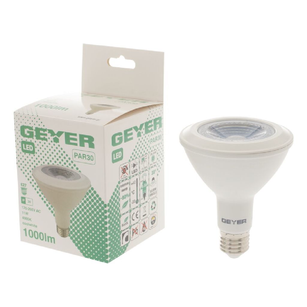 LED Par30 11W, E27, 4000K, 1000Lm για ψυχρό έντονο φωτισμό.