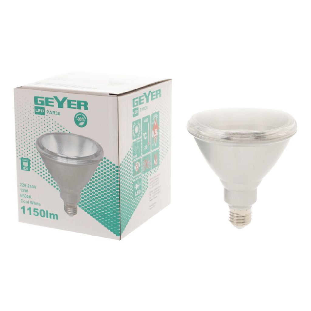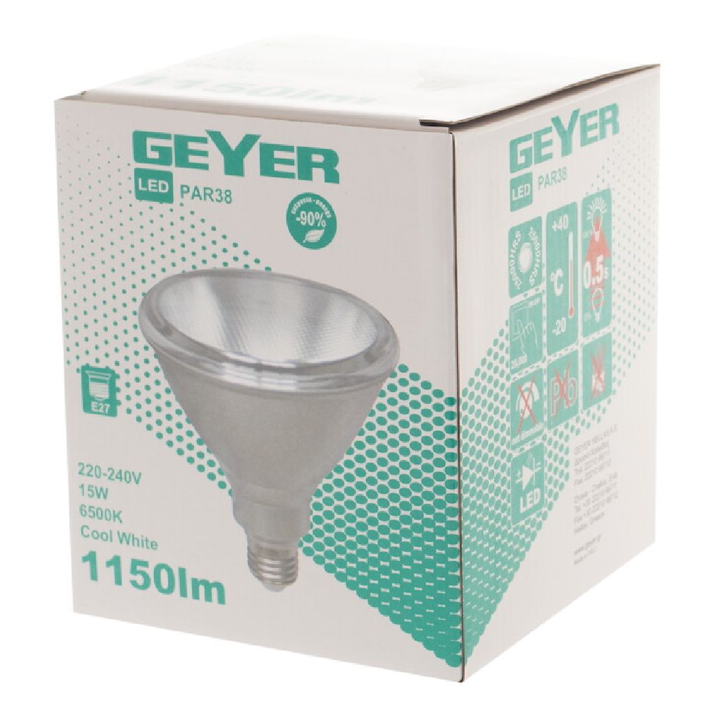 LED Par38 15W, E27, 6500K, 1100Lm, IP65 για έντονο ψυχρό φωτισμό ημέρας εξωτερικά.