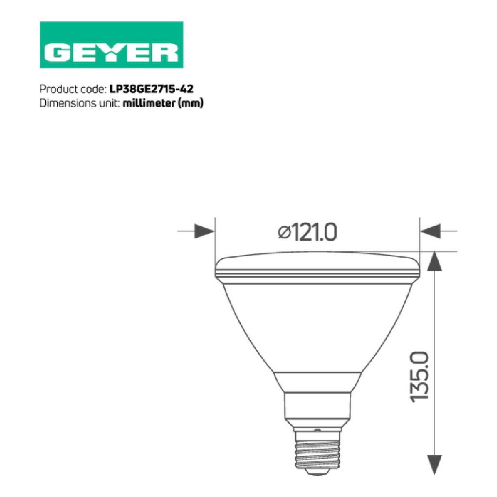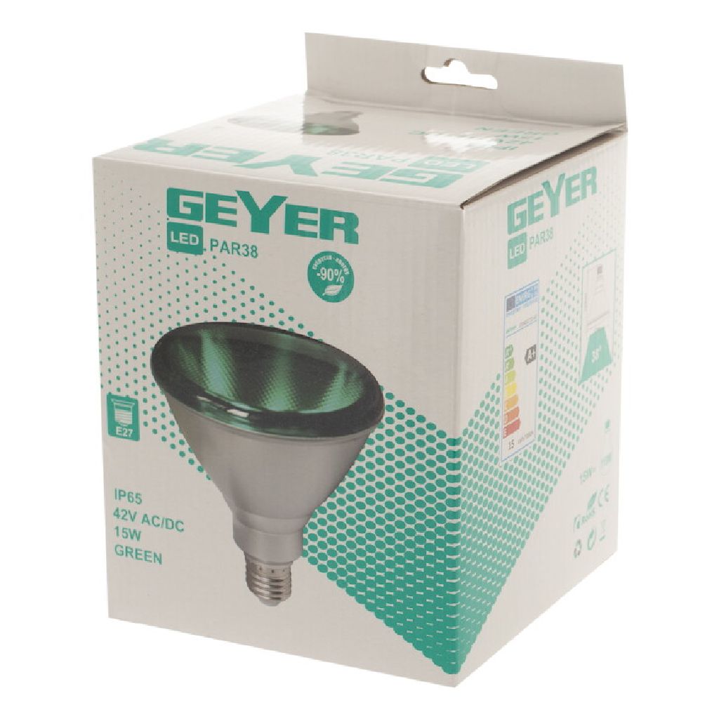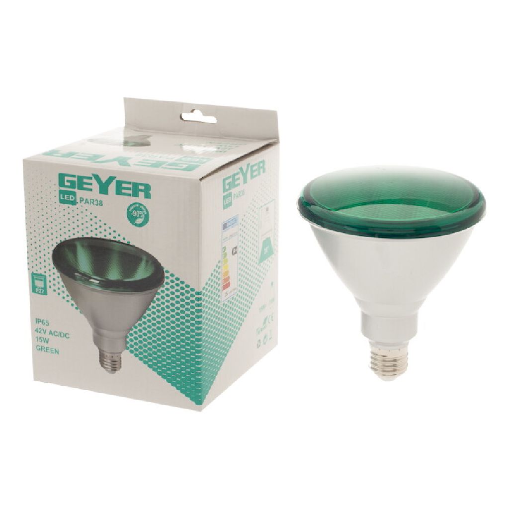 LED Par38 15W, E27, πράσινο, 42V AC/DC, IP65 για φωτισμό εξωτερικού χώρου μικρής τάσης.