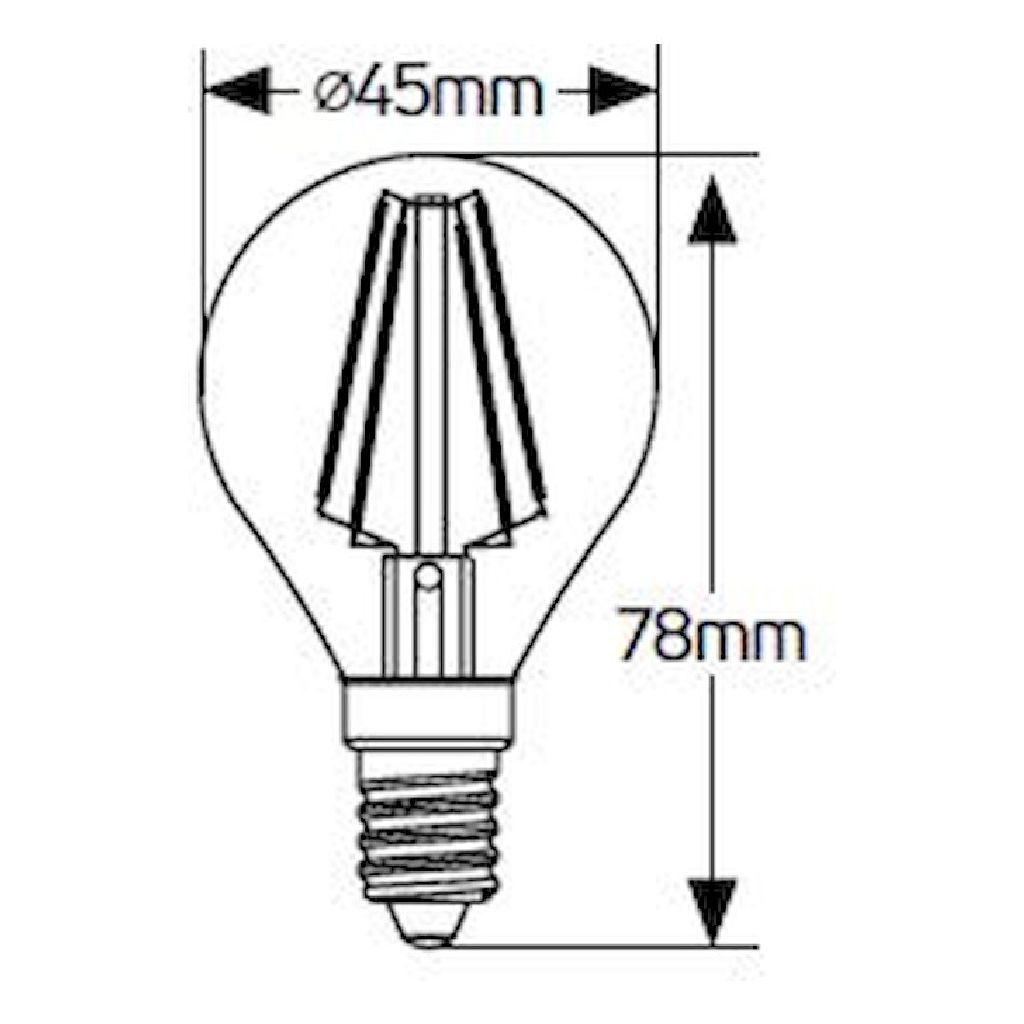 Σφαιρική LED filament G45 4W, E14, 2700K, 380Lm, dim για ρυθμιζόμενο φωτισμό θερμού τόνου.