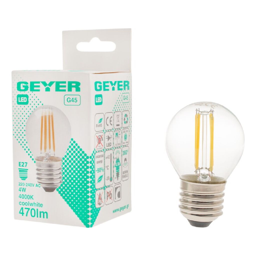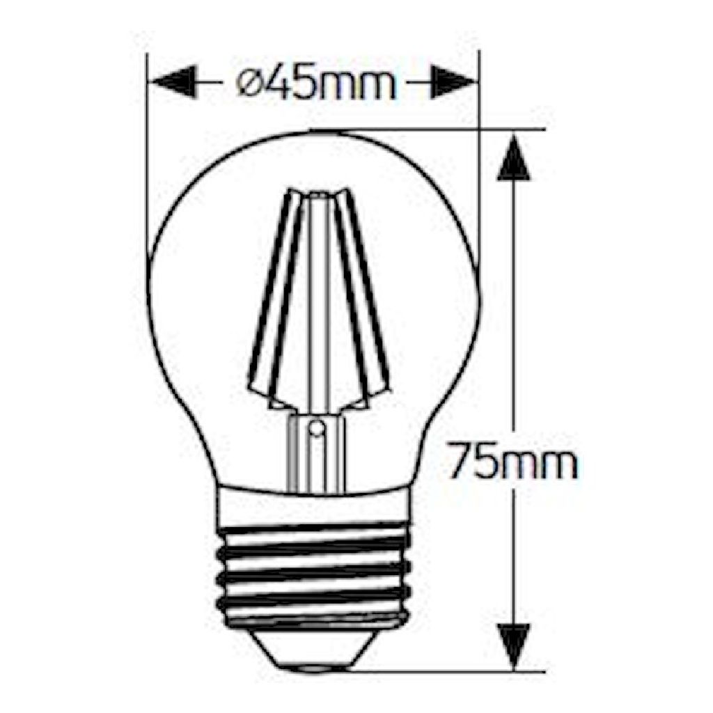 Σφαιρική LED filament G45 4W, E27, 4000K, 470Lm για ψυχρό φωτισμό γενικής χρήσης.