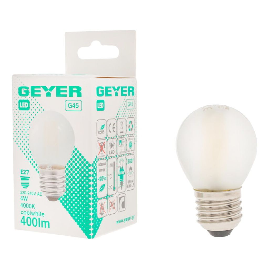 Σφαιρική LED filament Matt G45 4W, E27, 4000K, 400Lm για ψυχρό φωτισμό γενικής χρήσης.