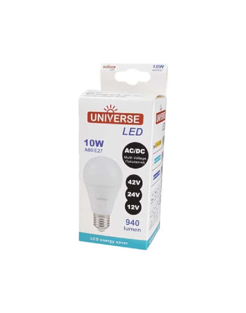 Λαμπα Led Smd Α60 10W E27 4000K 12-24-42Vac/Dc 880Lm/F Universe