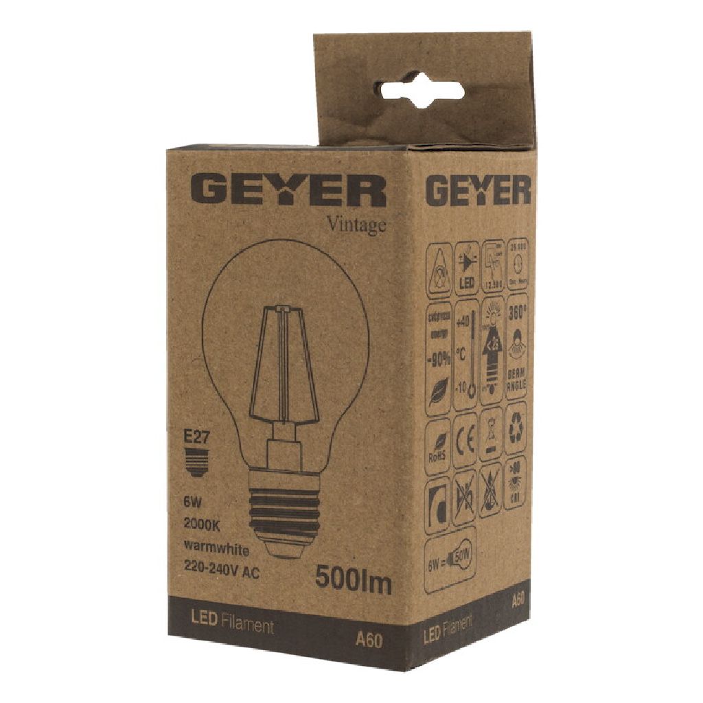 Vintage λάμπα LED A60 6W, E27, 2000K, 550Lm για έντονο ζεστό φωτισμό.