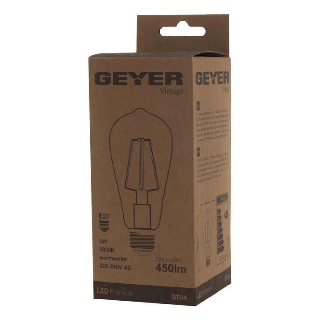 Vintage λάμπα LED St64 6W, E27, 2000K, 500Lm, dim για ζεστό, ατμοσφαιρικό φωτισμό.